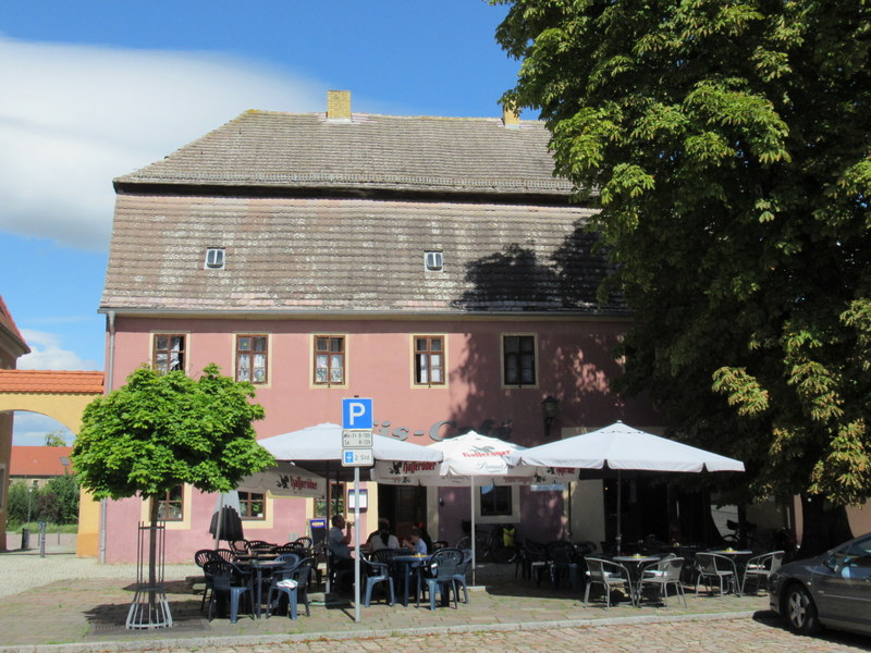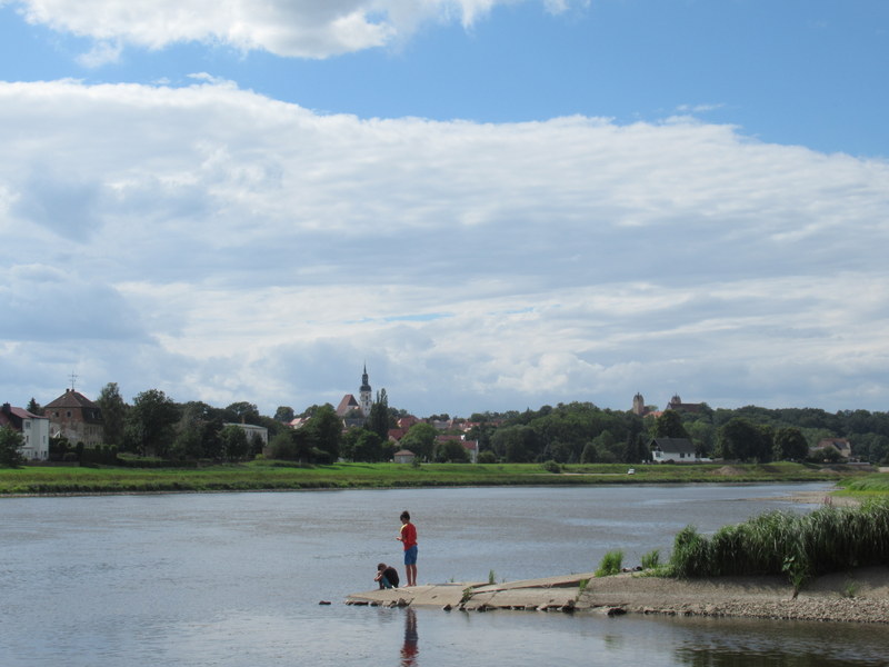 When our stomachs said it was lunch time, we crossed the river into Muhlberg.