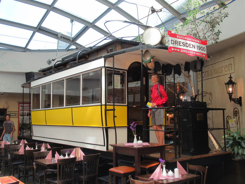 We had our morning coffee in a café across from the church and discovered on the way to the WC that the café is decorated with original Dresden trolley memorabilia from the early part of the 20th century. They included an ongoing video of the same era