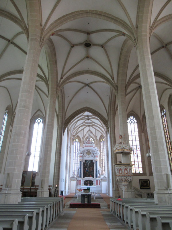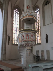 Torgau, the second most important city for Martin Luther (ML). After ML posted his 95 Theses on the church door he was on the pope’s bad boy list. He fled to Torgau where he was hidden and protected by the King, who, by the way was Catholic. It was in Torgau that he consecrated the King’s palace chapel as the first Protestant church. It was also where the first Protestant church was built and also consecrated by ML