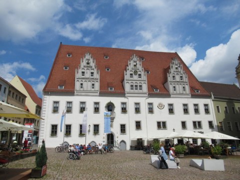 capped off by the city hall also dating to the 16th century. Torgau seems to us, despite its religious significance, far less a tourist attraction than Wittenberge as there were few tourists around. Their loss.