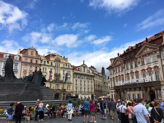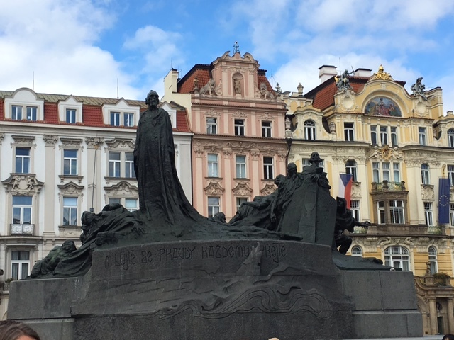We interrupted the tour for coffee breaks both morning and afternoon, and had lunch around 1:30 near the astrological clock. The main square has a huge statue of Jan Hus
