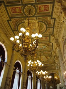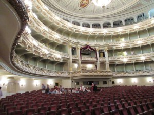 and had a tour in English. The tour was a bit disappointing since it didn’t include any views or discussion of the behind the scenes parts of the theater. What we did see was very impressive and beautiful reconstruction after the bombing.
