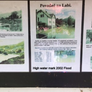 There was a marker at this spot showing the high water mark of a few floods. The biggest one, in 2002, was about 35 feet above the normal river level and reached the house further away from the river than we were eating. The pictures do not give it justice.