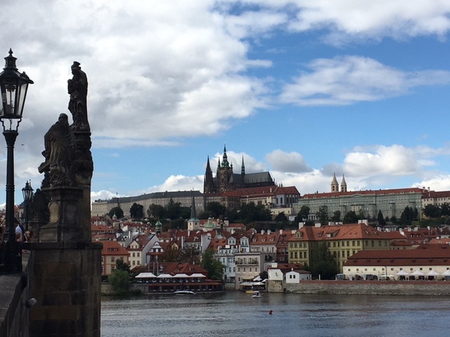 who preached a century before Martin Luther and questioned the practices of the Catholic church of which he was a member, but not as fortunate as ML as his life ended warmly at the stake. There was a lot of music being played in the streets and squares which made for a very festive atmosphere. The walk ended for us at the famous St. Charles’ bridge looking up at the castle across the Vltava river.