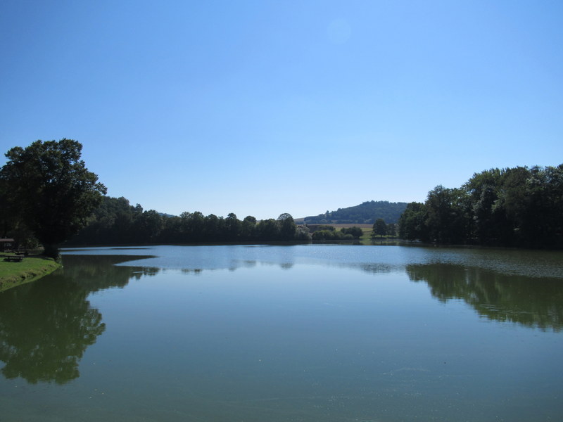 We stopped for coffee at a camping, hostel, water sport beach area along the river which was full of people packing up their tents after a weekend of rafting and canoeing. The sky darkened a bit as we moved on. We happened on a village fair with a slide and bump and jump for the kids and perhaps a dozen tents and kiosks selling mead, handcrafts, beer, and food.