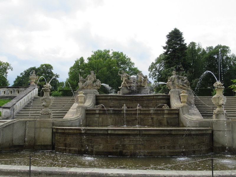 After the war and under Communist control, things were no better. Then, in the 1990’s a light shined on this place and things started to take off. Land and houses that could have been bought then for the equivalent of $2000 would sell for millions today. The castle is the mainstay,but the large old town with its many varied and colorful buildings are also a tourist attraction. We visited a portion of it today, but will concentrate more on the place itself tomorrow. We visited the 5 courtyards, the huge gardens part in the English style and part in the French (a la Versailles), one of the castle museums which included recreations of some of the rooms furnishings and areas of note
